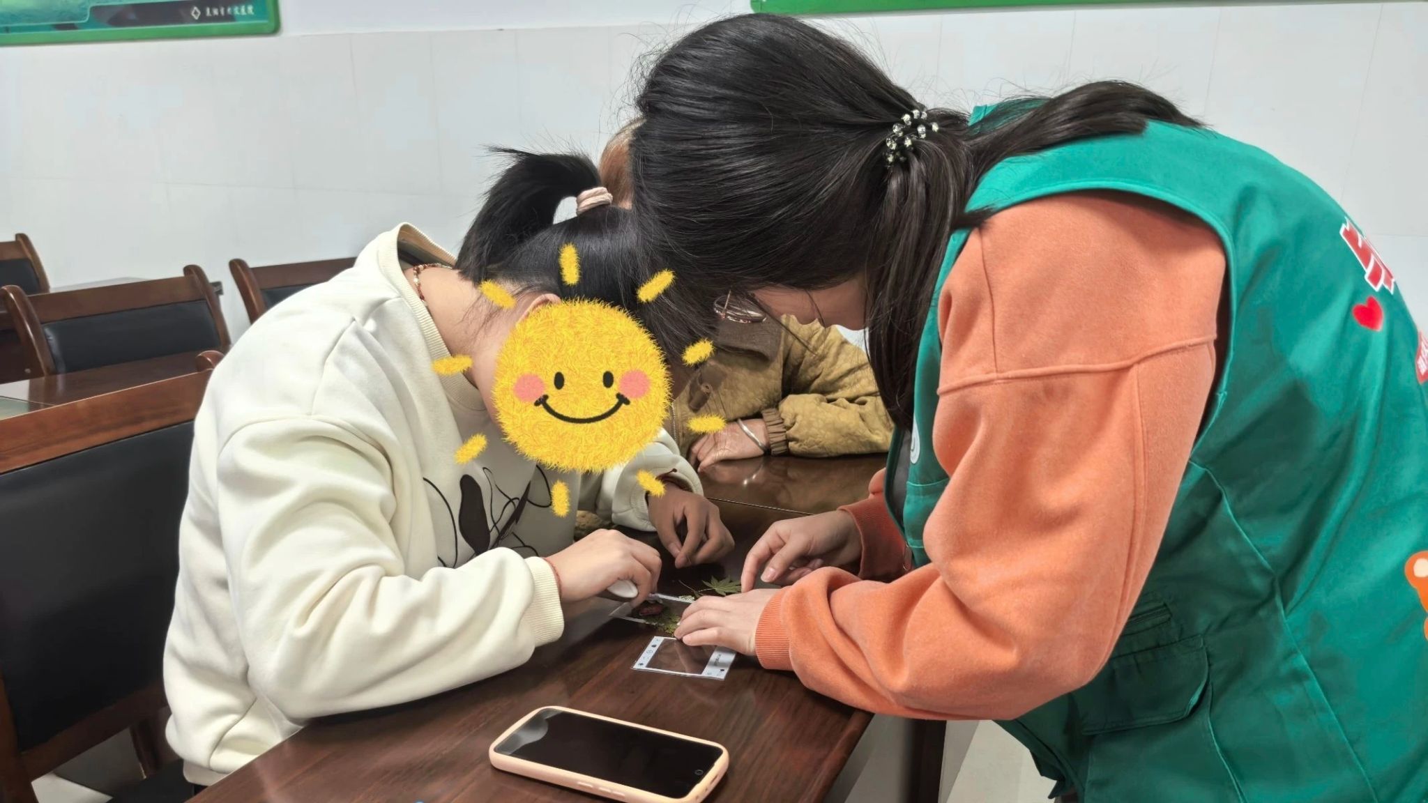 活动中,志愿者黄坤雪以“每个人都是独一无二的个体”为起点,借助视频展示不同人生轨迹,并带领大家开展手工压花游戏。在指导花与叶搭配创作的过程中,她结合自身经历提问“自己的独特之处有哪些”,引导参与者发现并表达自我价值。