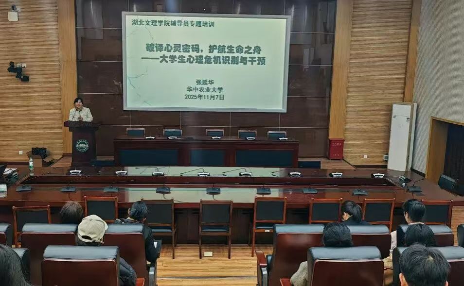 11月7日,学工处邀华中农业大学副教授、大学生心理健康教育中心副主任张延华来校,为近三年入职的辅导员及专职心理教师开展题为《大学生心理危机识别与干预》的专题讲座。