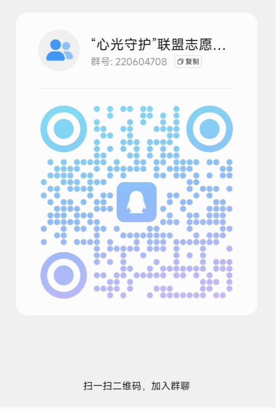 若你怀揣爱心与热忱,符合上述条件,欢迎通过扫描二维码,加入QQ群,填写报名表提交报名信息给相关负责人。