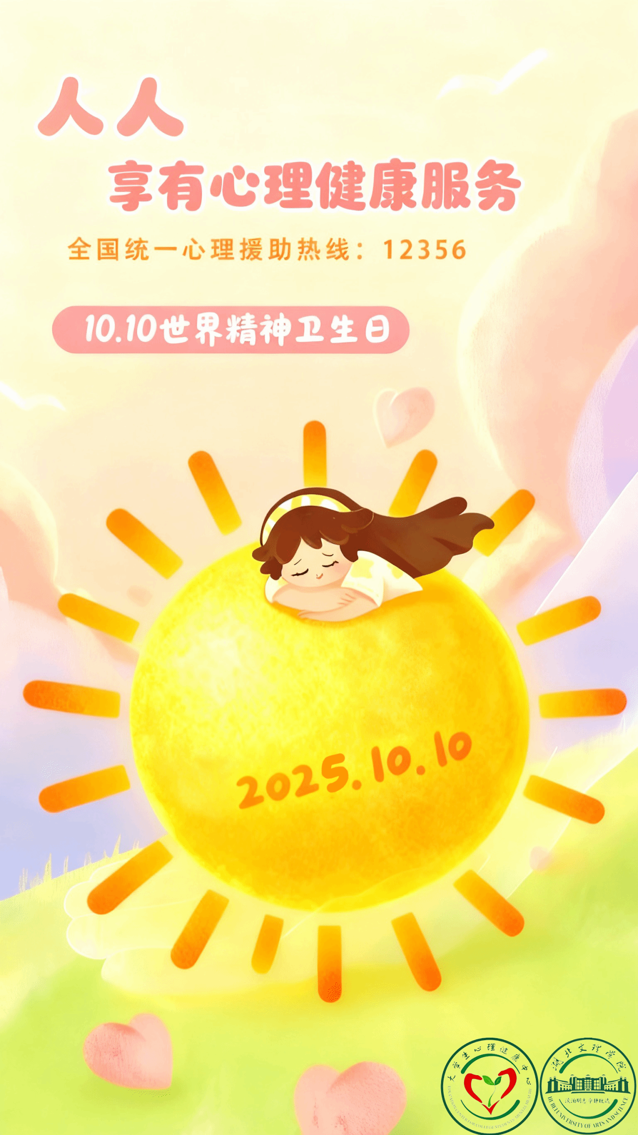 10月10日是世界精神卫生日,为贯彻落实国家卫生健康委办公厅印发的《关于开展2025年世界精神卫生日宣传活动的通知》,营造和谐、健康、温馨的校园文化氛围,提高广大学生关注心理健康和提升心理素质的意识和能力,广泛宣传、普及心理健康知识,学校决定围绕2025年世界精神卫生日开展系列宣传教育活动。