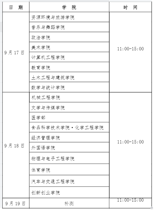 2024级:9月17日—19日,2025级:10月8日—10日,具体时间附后。