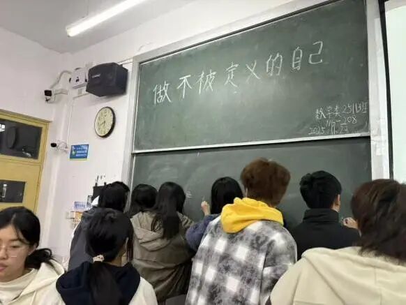 数学与统计学院2025级各班在教室开展了“与自我和解,向定义说‘不’”心理主题活动。活动过程中同学们先将外界贴的“学霸”“社恐”等标签写在黑板或便签上,再亲手撕掉想摆脱的标签,分享环节里同学们也敞开了心扉表达了感悟。这次活动不仅是一次自我认知的探索,更是对刻板标签的温柔反抗。数统学子在参与中重拾自我,深刻领悟到:人生的定义权,从来都在自己手中。