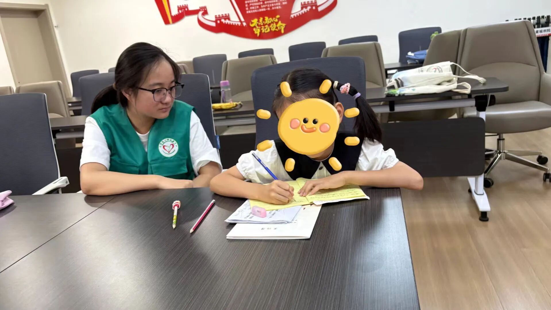 暑期有幸参与心光守护联盟志愿服务队,前往龙王镇守护镇上的孩子们的童心。初为未保志愿者,与孩子们相处,一同画画、做手工,听他们分享小秘密 。他们纯真的笑容、对新鲜事物的好奇劲儿,深深感染我。看他们手拉手跟着节奏晃,快乐特别纯粹。短短几日,我明白未保志愿是给孩子筑梦,用陪伴填缺。往后,我愿常来,汇聚微光,护孩子成长,让未保温情延续 。