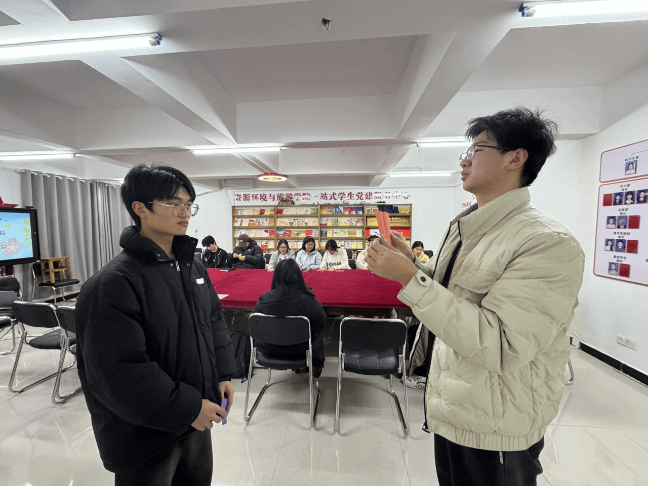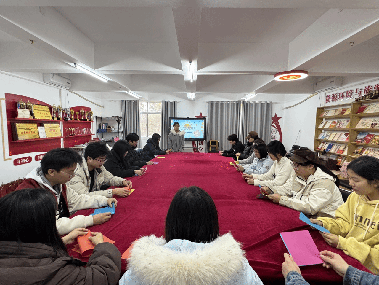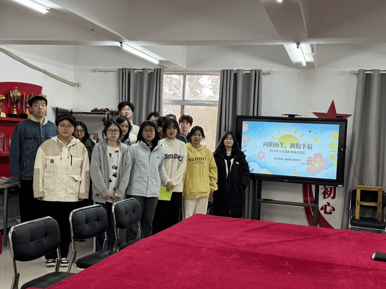 3月20日国际幸福日当天,资源环境与旅游学院心健权益部在十二栋一站式学生服务中心开展了“向阳而生,拥抱幸福”主题心理团辅活动。在辅导员魏金风的带领下,24、25级三十余名学生积极参与。活动在主持人的组织下,通过你画我猜、反向指令大挑战、解压互动等一系列轻松有趣的环节,让同学们在欢声笑语与团队协作中有效释放压力、学习自我关怀,现场气氛热烈而融洽。活动最后为表现优异的同学颁发了证书,在满满的收获中圆满结束。